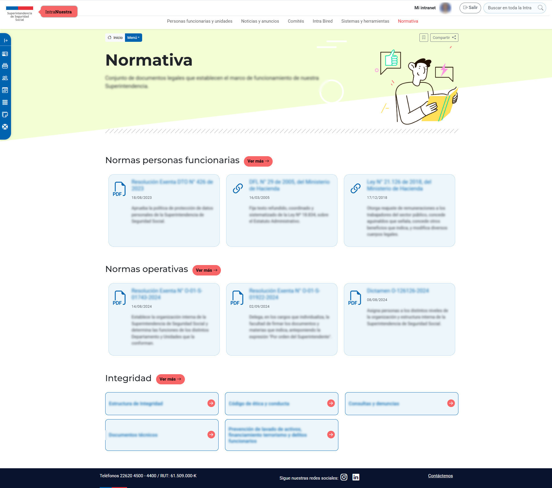 Sección que presenta la normativa interna.