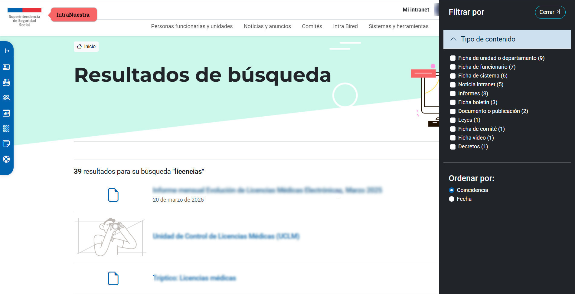 • Búsqueda con filtros por tipo de contenido.