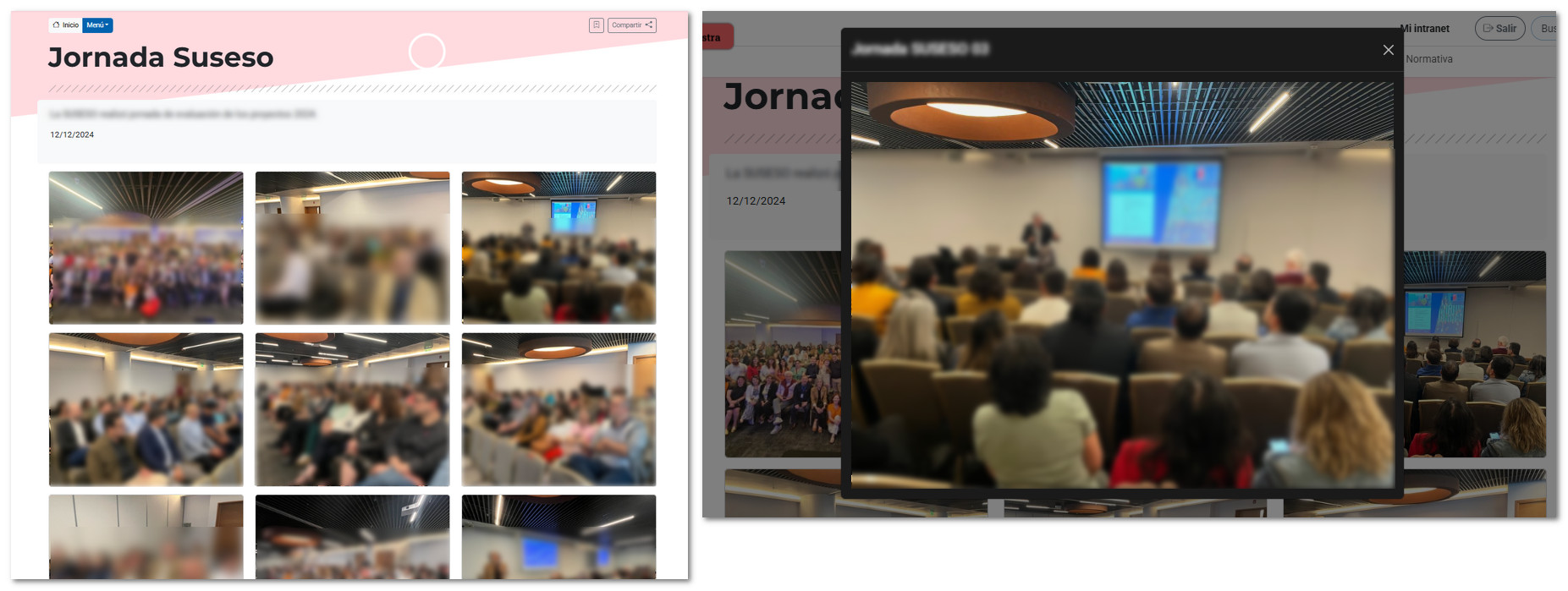 Vista parcial de una galería de imágenes. Al seleccionar una fotografía, se despliega a un mayor tamaño.